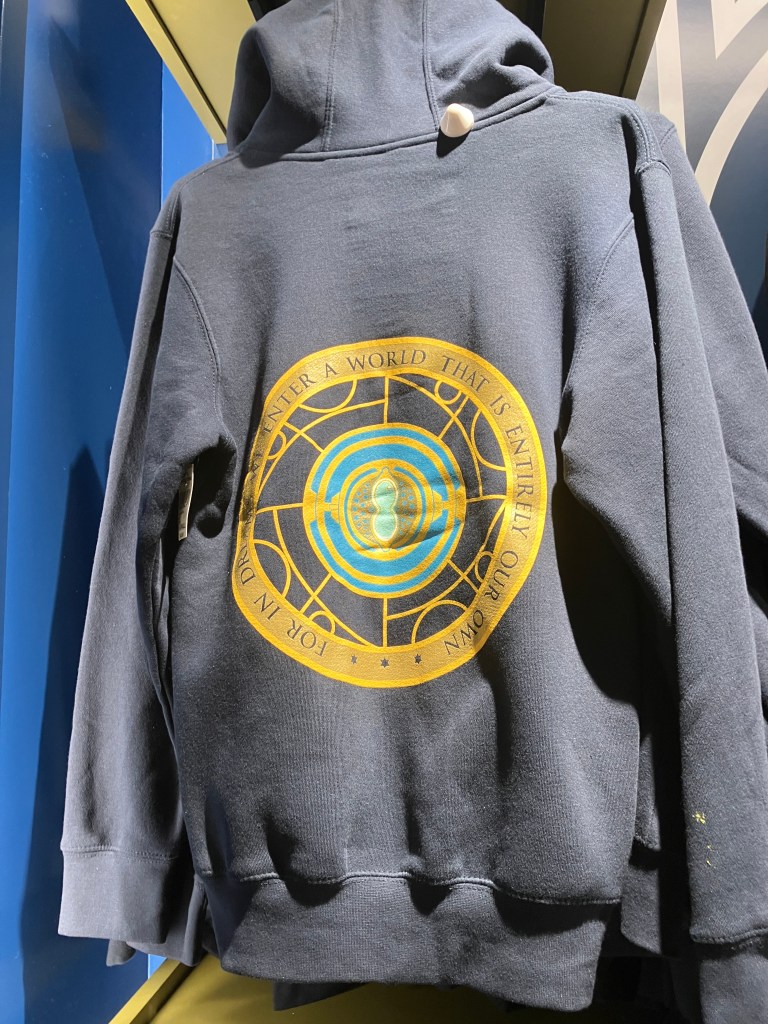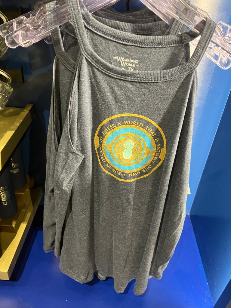 The Harry Potter merch available for sale in the preview center is emblazoned with a Time-Turner design. As we’ve speculated on past episodes of the podcast, could this be a nod to the fact that there will be some timeline jumping within this world? We know the actual streets and facades of wizarding Paris are built to align with the Fantastic Beasts timeline, which spans the 1920s and 1930s, but the ride jumps forward to a post-Deathly Hallows timeline where we see Umbridge on trial for the crimes she commits during the Second Wizarding War.