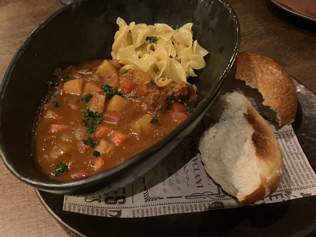 The vibes at Le Gobelet Noir, which is a dimly lit rustic tavern serving Central European dishes inspired by German and Hungarian cuisine, are very different from those of the light and airy Café L’air de la Sirène. However, just like at the café, the food is served on real dishes and the presentation is impressive for a quick-service restaurant.