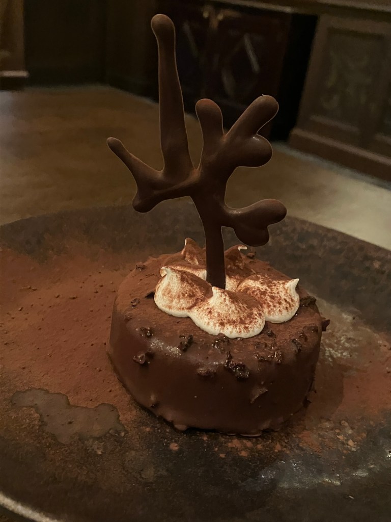 The cherry-soaked chocolate cake, chocolate mousse, and cherries are encased in a hard chocolate shell, garnished with a chocolate “tree,” and sprinkled with cocoa powder. This dessert gets a 10 out of 10 for presentation alone, which is elevated to 100 out of 10 once you take a bite—the cake was rich, moist, and bursting with flavor. If you like cherries and chocolate, you need to try the Black Forest cake!