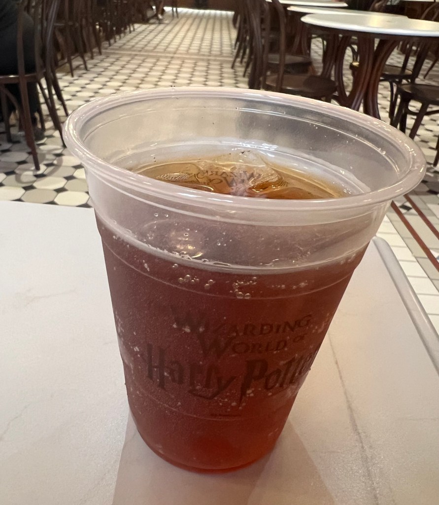 To drink, we sampled Thé Fraise, one of the specialty drinks offered at Café L’air De La Sirène and Bar Moonshine. This drink is a strawberry mint iced tea and was very refreshing on a hot day! Thé Fraise actually stood out to us as one of the best specialty drinks we tasted during our time at the park.